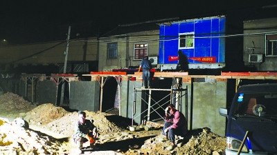 10月2日凌晨1点,市民张先生经过兴隆大街南西营村时,看到一群工人正在路边突击盖围墙。张先生住在离此处不远的小区,知道这里是一片待拆迁的村庄,他就认定这里是在突击盖违建,目的就是在拆迁前多圈点地。记者随即到实地进行了走访调查,南西营村位于凤台南路西侧,道路边上矗立起一堵高低不一的围墙,围墙有两百多米长,墙体内开着30多个门洞,几名工人正在门洞上方浇筑横梁。工人们告诉记者,他们已经在此连续施工四天了。