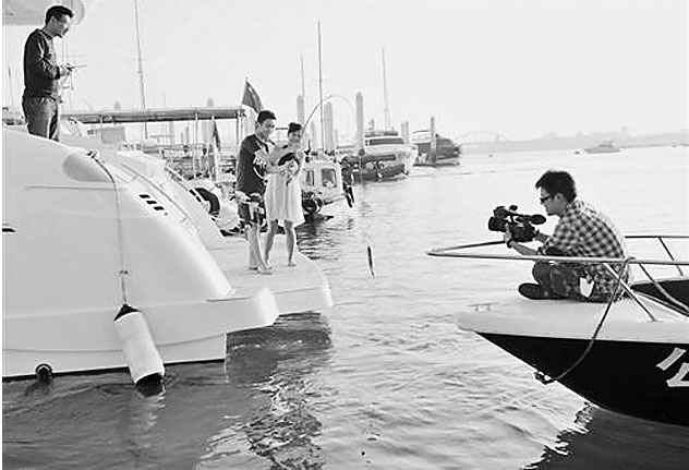 前日(5日)下午,李小龙搂着新娘小叶,在厦门五缘湾海边垂钓。一会儿,李小龙站起来飞快地收线,在小叶的欢呼声中,钓起一尾活蹦乱跳的鲈鱼。在夕阳的余辉中,这对小夫妻像孩童般在甲板上跳。二人脚下是他俩租来拍摄婚纱电影的道具——市值上千万元的游艇。这样的“道具”,他们一共租了五艘。“穿帮啦!这是淡水鱼!剧务搞什么名堂!”在小两口的欢呼声中,一个戴着渔夫帽的脑袋从对面的摄像机后探了出来,对着边上的工作人员沉下脸来—— 每艘游艇一小时的租金近一万元。因这个NG镜头浪费了一段时间,意味着得多“烧”一叠的钱。