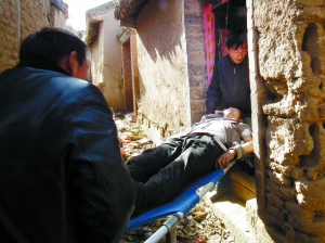 7日,遇难少年杨少朋的遗体被家人抬回家。曹福川 摄