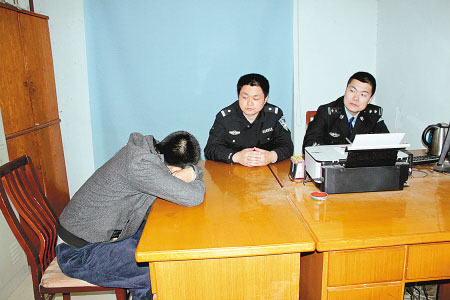 嫌疑人李某趴在桌子上,头埋在双臂间,不愿面对记者。