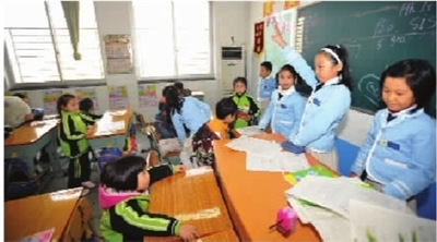 “少儿政府”的副市长和两位局长在教室里检查纪律。记者 田超 实习生 陈杰 摄