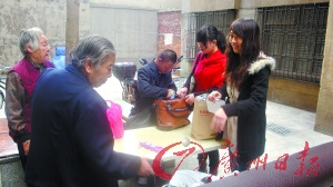 昨天下午,在“大雪”节气的日子里,两位女孩带着小安和阿婆,在数位花都电大同学帮助下,提上大包小包的衣物和好心网友同学一起攒的钱,租了辆面包车赶往了位于花都区梯面镇的救助站。在小安进去时,阿婆依在门口交代着,小安则抬起右手,放在嘴边摆着姿势与众人告别。(记者欧阳晨摄影报道)