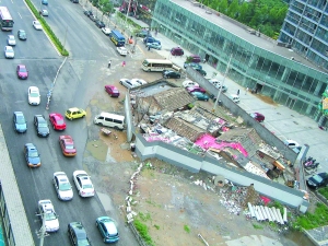 6月17日,曙光西路,由于“钉子户”占道,马路不得不绕弯。本报记者 王嘉宁 摄