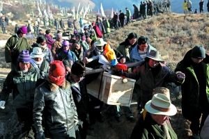 昨日,四川道孚居民送别在救火中牺牲的平民。记者 秦斌 摄