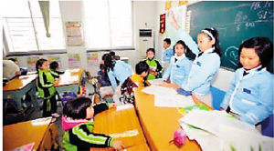“少儿政府”的副市长和两位局长在教室里检查纪律