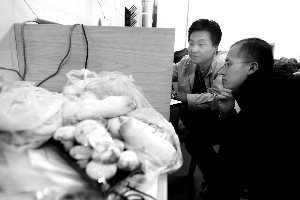 昨日(8日)下午,北京农学院“农业部都市农业(北方)重点开放实验室”,中国政法大学的研究生带着从六区17个超市、市场购买的各种蘑菇前来检测。本报记者浦峰摄