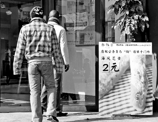 不过,广告牌已经在店外放了2个星期了,任磊说,“会放到自己不想放为止。”(实习生 冯怡/文 特约记者 葛跃进/摄)