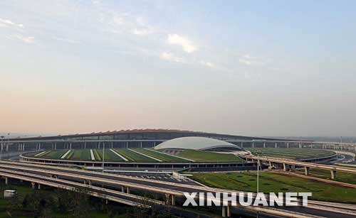 这是首都国际机场新建3号航站楼及其外侧交通中心的俯瞰全景(资料图片)