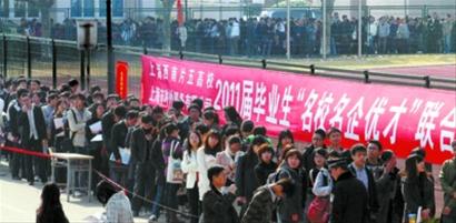 上海高校校园招聘进入高峰。图为“名校名企优才”联合招聘会在东华大学举行。