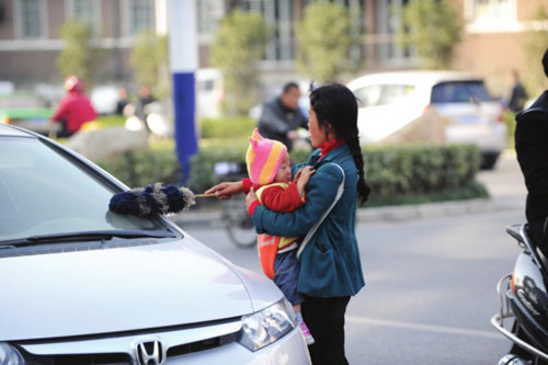 合肥的不少路口经常会出现一些拿着鸡毛掸子擦车的职业乞讨者。她们究竟从哪来?背后有没有人在控制?她们或背或抱的孩子是不是自己的?近日,记者对一群“擦车乞讨族”进行了追踪调查。