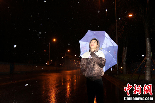 据气象资料记录显示,1991年12月,重庆主城区罕见大范围飘雪。此后19年间,重庆主城冬季虽气温偏低,但除缙云山外的其他地方几乎无雪花降临。2008年1月27日,重庆主城境内的南山曾飘落过雨夹雪,但因时间太短,并没有给市民留下深刻印象。 (连肖 刘函冉)