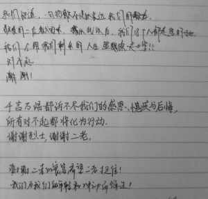 随后,记者在人群中找到了还在哭泣的下跪女生刘臣辰。面对记者,小刘痛苦难当,什么话都说不出来,“我们是真的错了,他为了救我们而牺牲,我们对不起张宁海警官……”“我想对张大哥的父母说几句……”随后她和另两名获救女生在本报记者的记事本上对张宁海的父母写下了忏悔之词。