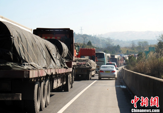 因强冷空气降雪结冰给交通带来严重影响,北方货运车辆无法南下,京港澳高速公路粤北段冰封受阻后,大量南下货车只得滞留在湖南境内等待高速公路解封。17日下午,南北交通全面恢复,得到信息的南下货车匆匆蜂拥而下,给刚刚恢复通行能力的道路带来新的拥堵,先后多处出现长达十余公里的车龙。