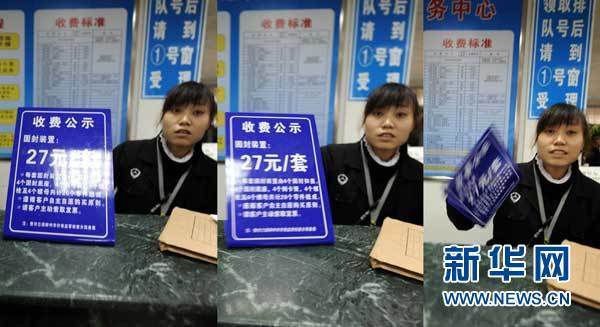 见到记者拍照,一工作人员立即将收费公示收了起来。公示上注明有“售价已报柳州市价格监督检查分局备案”,而物价部门称这项收费并未备案,此举是误导消费者(拼版图片,12月13日摄)。新华社记者李斌摄