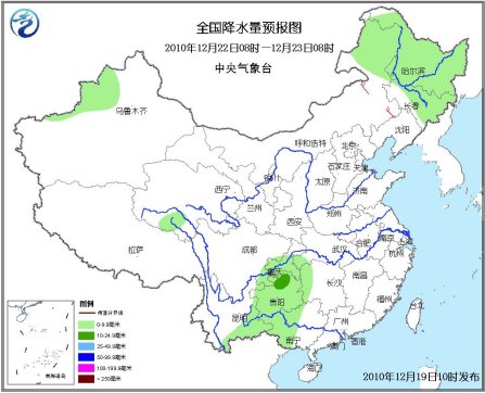 22日08时至23日08时,新疆西部、内蒙古东北部和东北地区中北部有小到中雪;重庆、贵州、云南西南部、华南西部等地有小到中雨;我国北方大部分地区气温将明显下降。