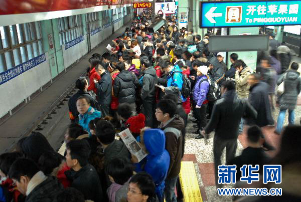 北京地铁1号线四惠站的拥挤程度在网友中广为流传(12月14日摄)。新华社发(张宇 摄)