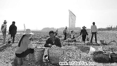 17日上午,在惠东县平海镇,记者看到农民忙着用稻草给马铃薯“添衣保暖”。据了解,这里的马铃薯刚播种40多天,突如其来的寒流使2万多亩马铃薯受灾。