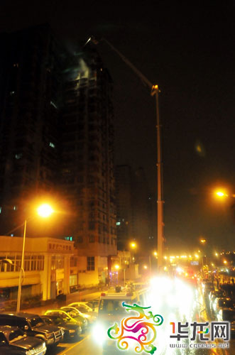 今日凌晨,重庆渝北区加州花园一居民楼21楼突发火灾,消防为灭火动用了78米高云梯车 消防供图 华龙网发