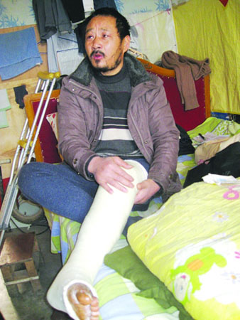 上个月因为谋生,张峰开着马自达为避让一辆电动车,左腿骨折。在接记者的路上,尽管天气寒冷,张峰只能穿着一条毛线裤,拄着拐杖,站在小区的门口等候。在他狭小的出租房里,张峰半躺在床上,流着泪说起了他的过去。