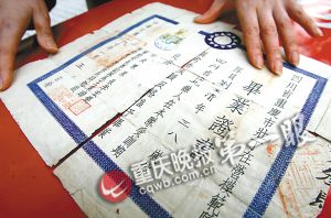 近日,集邮爱好者陈焰峰在重庆生活网论坛里展示了一本壮丁毕业证书,该证书的收藏者是江北一位专收民国字画、文件的藏家。记者辗转联系上该藏家,见到这本特殊的壮丁毕业证书。