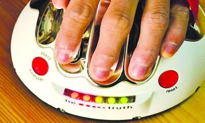 2、仪器上有5个灯,根据被测试人的回答灯会亮,如果标示“lie”(撒谎)的灯都亮了,被测试人将遭电击。反之标示“truth”(真实)的灯亮的话,被测试人就平安过关。