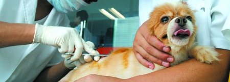 兽医正在给小狗注射药物 记者 欧阳祖兵 摄