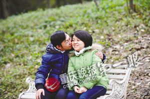 沙坪公园里,伊鸿伟给冯璐一个新年的亲吻。