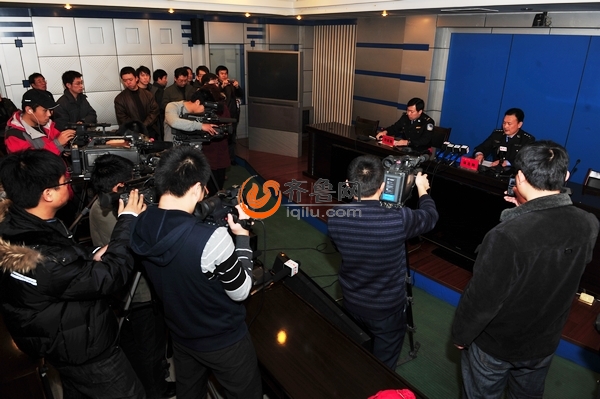 2011年1月5日,泰安市公安局召开第二次新闻发布会通报了1.04持枪杀人案牺牲民警及有关人员基本情况。图为发布会现场。(摄影 张晓博)