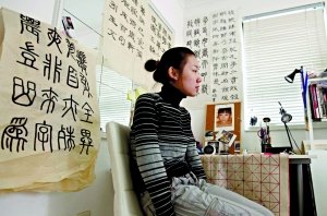 苏紫紫租住的小屋,挂满了自己的书法,她说自己平时很“宅”,没工作时愿意窝在家中。采访中她曾引导记者关注她的一些艺术作品,而不是关注她“裸模”的身份。