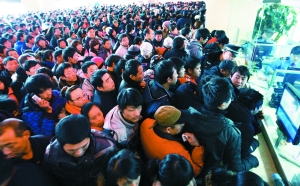 昨日,青岛迎来春运购票高峰,青岛火车站售票大厅里人头攒动,购票队伍排出大厅50余米。这一幕却未在北京看到,昨日是北京开售春运火车票的首日,但在北京西站及北京站购票的乘客并不多,未现购票高峰。工作人员表示,预计20日预售春节前三天车票,学生流、民工流逐渐到来,将迎来购票高峰。与此同时,全国各地铁路部门纷纷试水火车票实名制,继广州、成都之后,武汉、南昌等地也正式试行这一措施。 臧磊 摄