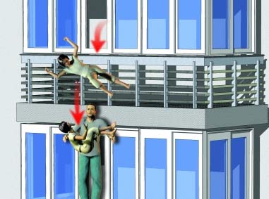 5楼坠下一团东西像棉花胎 4楼师傅伸手一接抱住个坠楼女童