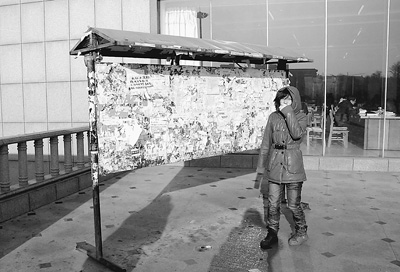 17日,在吉林师范大学图书馆附近的一处公告栏内,张贴着“寻替考”广告。新华社记者 周立权摄