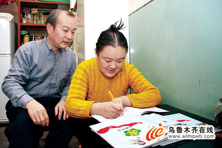 张凌在哥哥张凯旋的指导下写日记。(记者丁瑜摄)