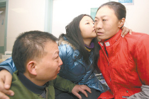 昨天,新桥医院,张怡亲吻着养育了她13年的妈妈。记者 罗伟 摄