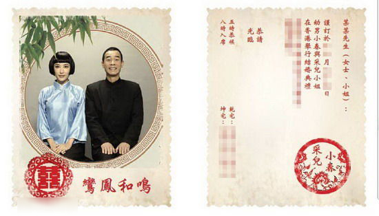 资料图片:陈小春和应采儿的结婚请柬 注:文图无关