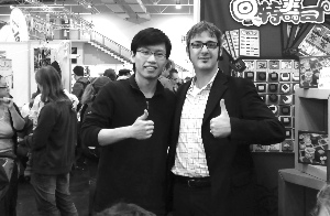 黄恺(左)参加德国桌游展。
