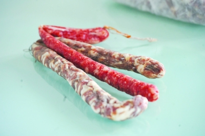 淀粉香肠 中间特别红艳的就是淀粉香肠。张筠 摄
