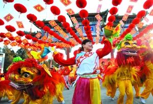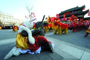 昨日,在地坛庙会开幕式上,国家“非遗”项目沧州舞狮表演吸引了不少观众。首席摄影记者 吴宁/摄