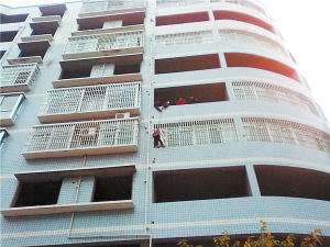 2月10日,开县平桥移民新区一栋居民楼上演惊险一幕。一位女孩在腰上仅系有一根绳子的情况下,从五楼降至四楼回家取钥匙,所幸在整个过程并未发生意外。
