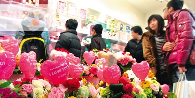 “情人节”将至,“创意”与“爱意”兼具的情人节商品和活动纷纷亮相,为商家赢得商机的同时,也为情侣们营造甜蜜温暖的节日气氛。图为上海一家花店推出的情人节花朵盆栽。刘颖摄
