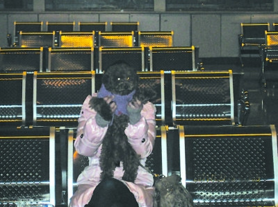 见有人拍照,女乘客用小狗挡着自己。资料图片