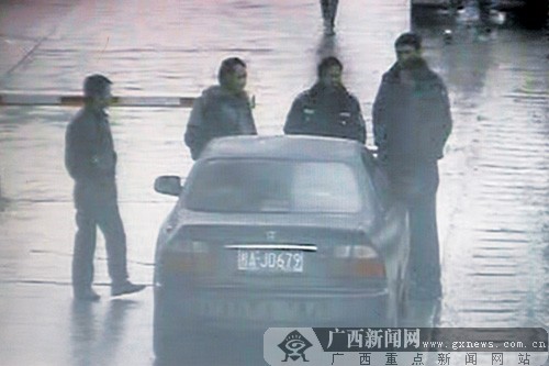 收费站的监控录像显示:16日下午3时25分,这辆挂着桂AJ0679车牌的本田小轿车出现在收费站一收费通道口,准备出城。一名身穿制服的女收费员跑到车头前,拦下了这辆车。随后,收费站的负责人来到现场交涉。不久,有民警前来处理。