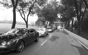 “主要是看车,实在是太骚包了。迈凯轮SLR,LP640,LP560,599GTB,R8,911T,GTS,F430,430SC,C63 AMG,TARGA4……空前绝后,2009年武汉那场超跑婚礼简直是小儿科。”去年2月25日,在无锡知名的“东林书院”论坛上,网友“wx_zc”上传了一组一个月前在无锡举办的一场婚礼照片,从上传的照片看,婚车车队的豪华程度令人咂舌。