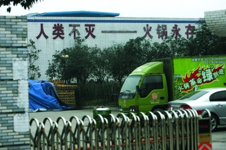 昨日,南岸区茶园,某火锅底料厂墙壁写着“不抓质量,天诛地灭”、“人类不灭,火锅永存”的标语。 本组图片由记者 邹飞摄