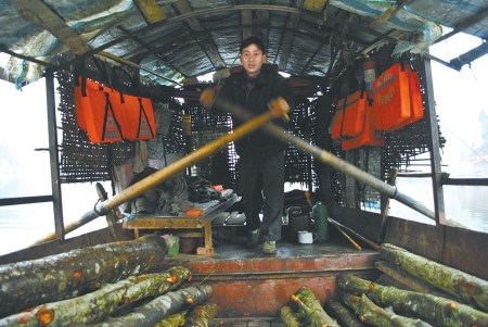 每逢赶场天,渡船南北两岸奔波不停,去时载人,回来时,猪、牛、羊、电视、摩托车全都涌上船。到岸后,他们还帮着村民卸货,船舱里留下的垃圾和牲畜的粪便只得自己清扫。