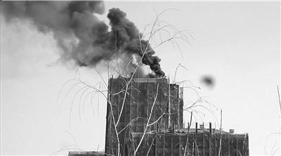 昨天,海淀区一在建楼冒出浓烟。读者供图