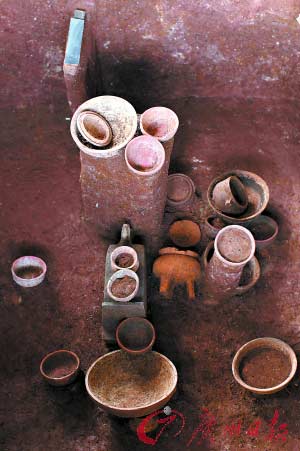 该处发现的东汉墓葬有11座之多,包括砖室墓和竖穴木椁墓两种,多数保存完好,随葬器物丰富。去年底发现的东汉前期砖木合构墓,随葬器物达111件套,是广州考古发现规模最大、结构最完整的东汉墓之一。