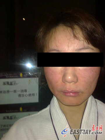 当晚8点多,叶小姐突然感到面部皮肤发痒,长出红疹。第二天情况越发严重,脸部还有些肿,她便在下班后赶去诗泥SPA会所。美容顾问查看情况后,认为叶小姐只是有点过敏,“她说做清洁和冷喷处理后,两三天即可消退,并强调不需要去医院诊治。”随后两天,叶小姐都如约去SPA会所做清洁冷喷处理,但过敏情况不但没有好转,反而愈演愈烈。“到后来整张脸都红肿,甚至面部轮廓也有些变形,奇痒无比,我根本无法正常上班、正常休息。”回忆起当初的遭遇,叶小姐仍有些激动。