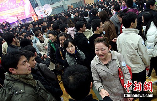 今日,“相约二号线”大型集体相亲交友活动在上海静安体育馆举行,本次活动吸引了沪上千名单身白领前来寻找有缘人。