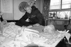 “照顾病人还要细心,病人最怕长褥疮,一旦长了褥疮,伤口溃烂难愈,极易感染。平躺一会儿,侧着躺,三面倒,看哪面皮肤发红,就少躺一会儿。夏天,胯骨部位还要经常用酒精消炎,平均俩小时给她翻一次身……”多年的护理经历,让刘俊明成了“专家”。让他欣慰的是,十几年来老伴没有长过一个褥疮,也没有感冒过一次。